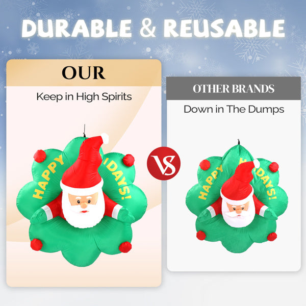 4ft Window Santa Claus Wreath, 5 LED Lights, Bundle Pocket Christmas Inflatable Decoration