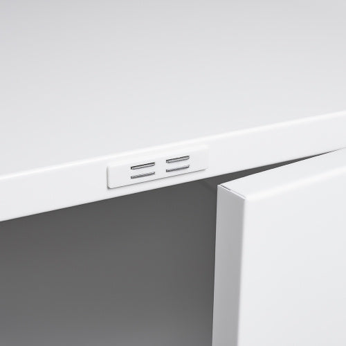 The top can accommodate a heavy-duty printer/copier, and the interior comes standard with a height-adjustable partition
